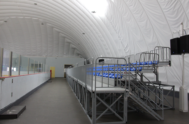 建成的气膜冰雪馆室内宽敞明亮,除了冰上运动区域,还设有观众席、休息区等功能区,满足多项使用需求。
